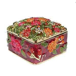You'll love this exquisite square, Red Rose Box. This delicate piece is set with genuine, sparkling Swarovski crystals and detailed in 24 karat gold. We've meticulously hand enameled this 3 dimensional beauty with great attention to detail. Perfect for jewelry or keepsakes. (also comes in Pink and Yellow)