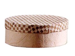 This round storage box is woven for us in heavy weight handmade paper in the familiar checkerboard pattern seen on Shaker chairs.6" diameter x 2" high. Imported.