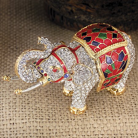 KEEPSAKE BOXES. These lavish visuals are perfect for cherished keepsakes. Features European crystals and handpainted enamel accents with a magnetic closure. ELEPHANT 2 1/2" high.
